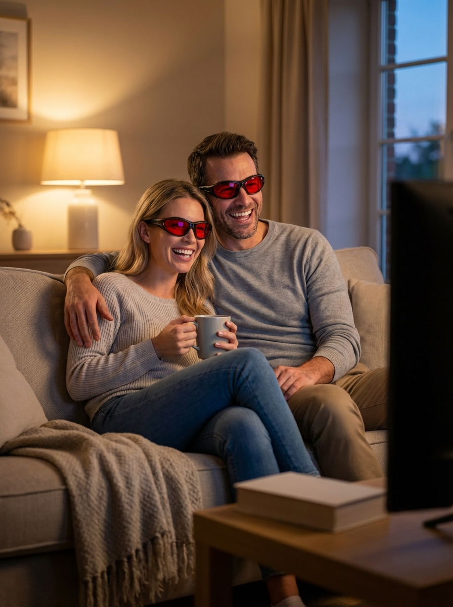 They block 100% of blue and green light (400–550nm), the light range most associated with sleep disruption, eye strain, and nighttime fatigue.